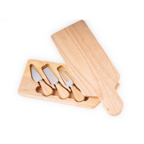 Set Contains | 2.5" cheese knife, rubber wood board |