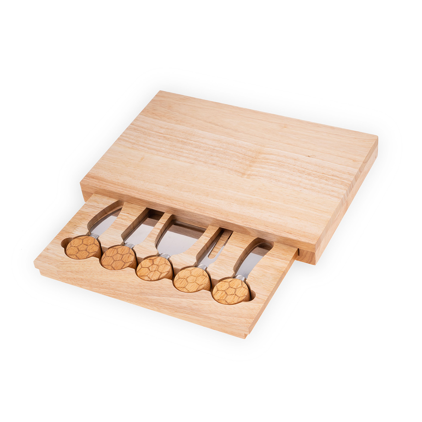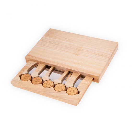 Set Contains | 2.5" cheese knife, rubber wood board |
