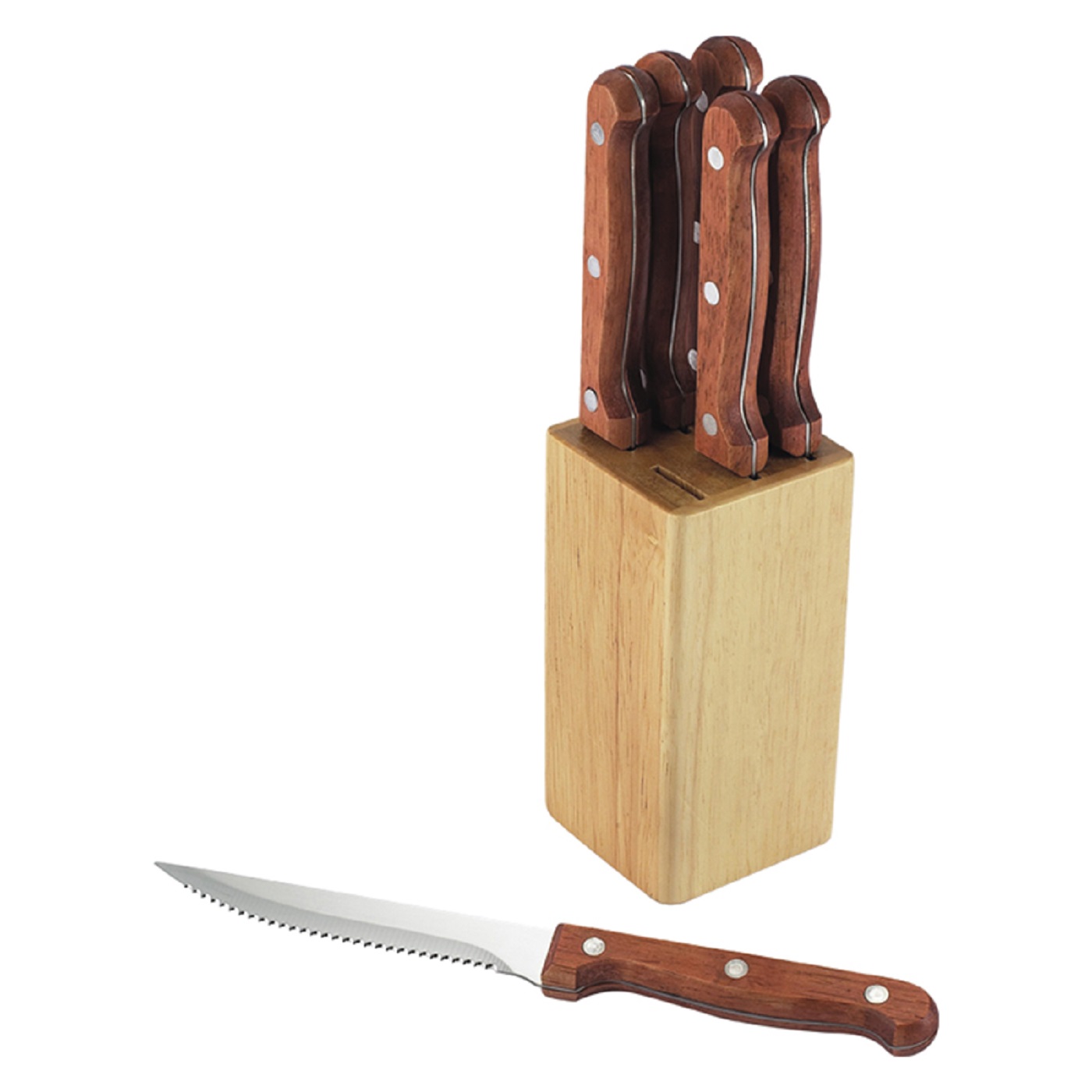 7pcs steak knife set● Jumbo knife design with comfortable grip wood handle.